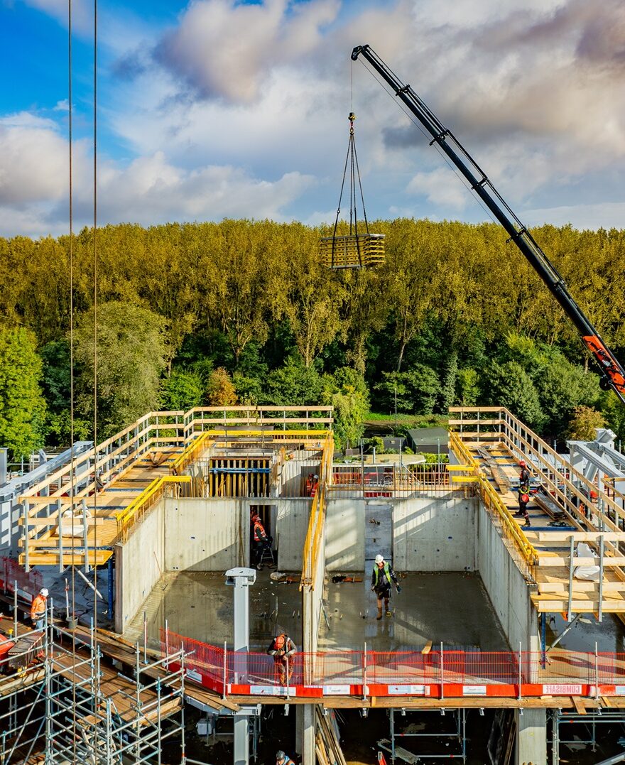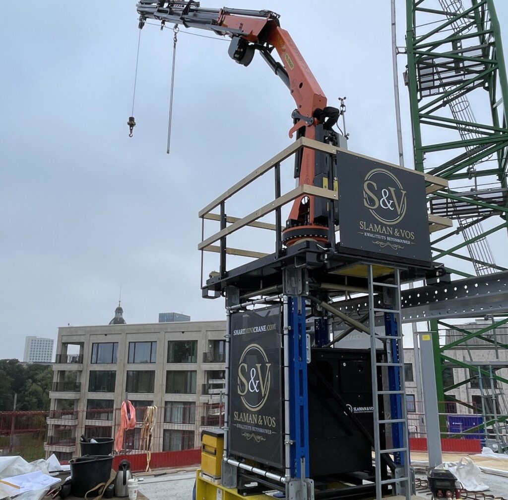 In drukke binnensteden is er op bouwplaatsen vaak maar ruimte voor één torenkraan, wat logistieke uitdagingen geeft. De Smart Mini Crane biedt hiervoor de oplossing: deze mini-hijskraan neemt het lichtere hijswerk over (objecten van ca. 550 kg tot 2500 kg). Hij is daardoor ideaal voor het heffen van wapening, steigermateriaal, gevelpanelen en het gebruik als betonverdeler. Terwijl de torenkraan de zware taken aanpakt, kan de Smart Mini Crane tegelijkertijd de kleinere hijsklussen uitvoeren, zo bespaar je tijd en geld op de bouwplaats.