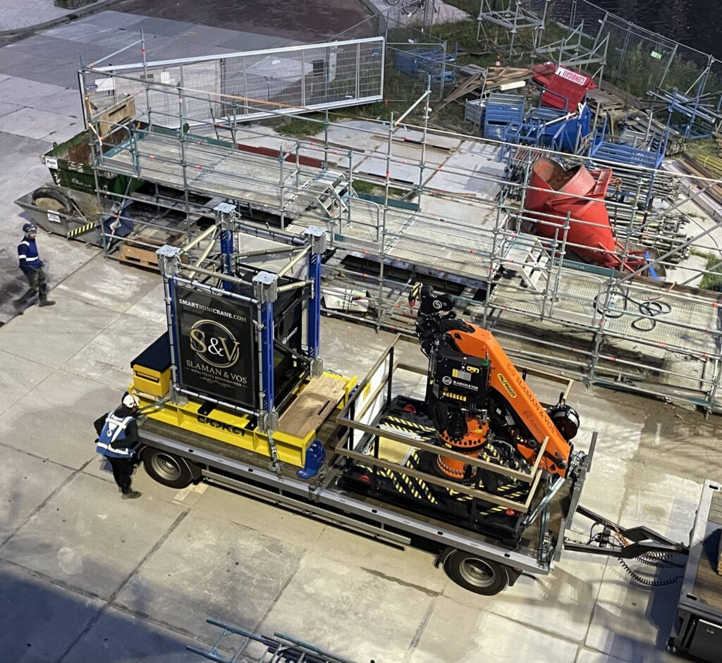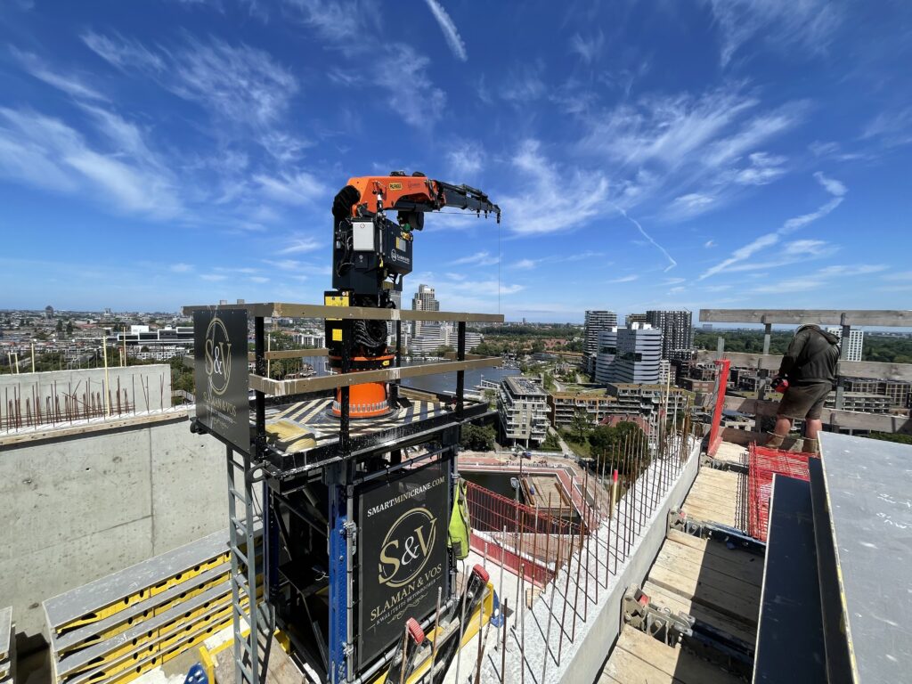 De Smart Mini Crane is een door S&V gepatenteerde, elektrisch aangedreven mini-hijskraan ontwikkeld voor moderne bouwprojecten met beperkte ruimte. Volledig elektrisch (15 kW, 32 A) en eenvoudig te verplaatsen. Ontworpen om het lichtere hijswerk over te nemen van de torenkraan, waardoor bouwtijd, kraantijd en fysieke belasting worden gereduceerd.